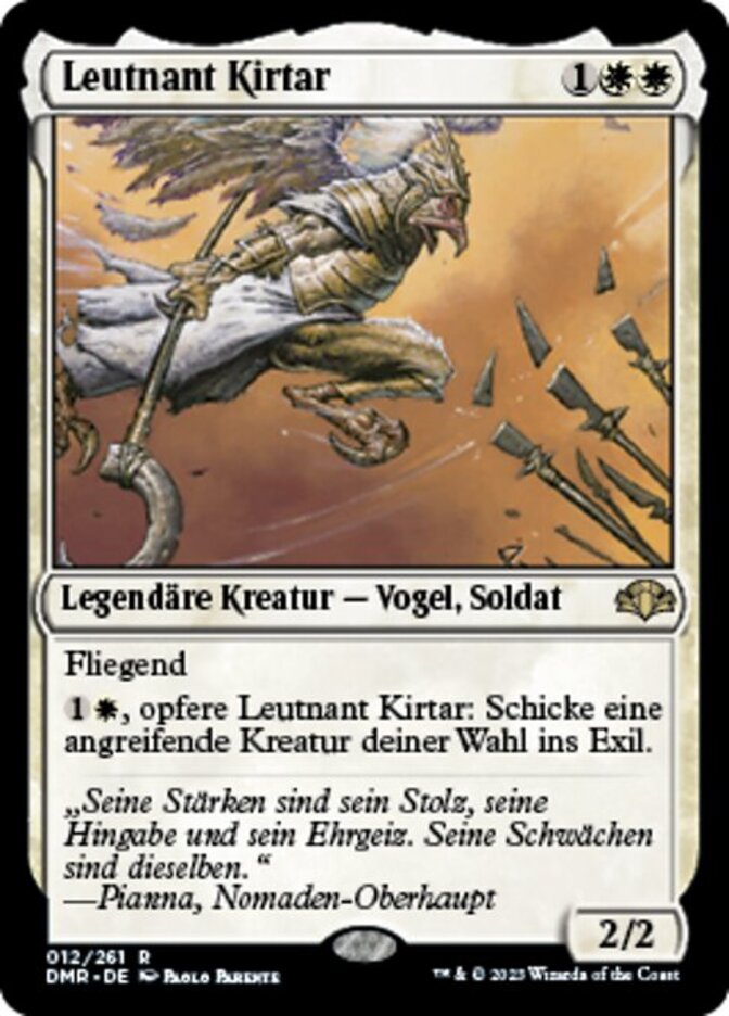 | Rules | Flying , Sacrifice Lieutenant Kirtar: Exile target attacking creature. |