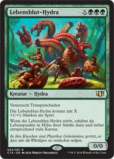 | Rules | Trample Lifeblood Hydra enters the battlefield with X +1/+1 counters on it. When Lifeblood Hydra dies, you gain life and draw cards equal to its power. |