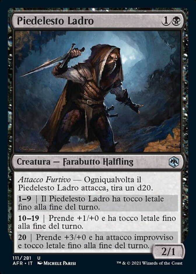 | Rules | Sneak Attack — Whenever Lightfoot Rogue attacks, roll a d20. 1—9 | Lightfoot Rogue gains deathtouch until end of turn. 10—19 | It gets +1/+0 and gains deathtouch until end of turn. 20 | It gets +3/+0 and gains first strike and deathtouch until end of turn. |
