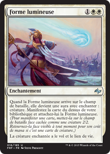 | Rules | When Lightform enters the battlefield, it becomes an Aura with enchant creature. Manifest the top card of your library and attach Lightform to it. (To manifest a card, put it onto the battlefield face down as a 2/2 creature. Turn it face up any time for its mana cost if it's a creature card.) Enchanted creature has flying and lifelink. |