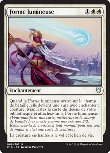 | Rules | When Lightform enters the battlefield, it becomes an Aura with enchant creature. Manifest the top card of your library and attach Lightform to it. (To manifest a card, put it onto the battlefield face down as a 2/2 creature. Turn it face up any time for its mana cost if it's a creature card.) Enchanted creature has flying and lifelink. |