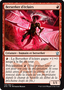 | Rules | : Lightning Berserker gets +1/+0 until end of turn. Dash (You may cast this spell for its dash cost. If you do, it gains haste, and it's returned from the battlefield to its owner's hand at the beginning of the next end step.) |