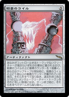 | Rules | Whenever a nontoken creature you control dies, put a charge counter on Lightning Coils. At the beginning of your upkeep, if Lightning Coils has five or more charge counters on it, remove all of them from it and create that many 3/1 red Elemental creature tokens with haste. Exile them at the beginning of the next end step. |