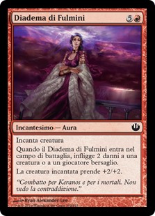 | Rules | Enchant creature When Lightning Diadem enters the battlefield, it deals 2 damage to any target. Enchanted creature gets +2/+2. |