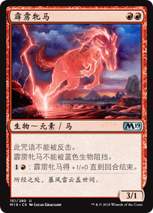 | Rules | This spell can't be countered. Lightning Mare can't be blocked by blue creatures. : Lightning Mare gets +1/+0 until end of turn. |
