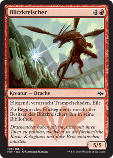 | Rules | Flying, trample, haste At the beginning of the end step, Lightning Shrieker's owner shuffles it into their library. |