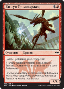 | Rules | Flying, trample, haste At the beginning of the end step, Lightning Shrieker's owner shuffles it into their library. |