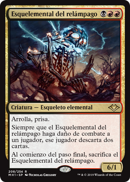 | Rules | Trample, haste Whenever Lightning Skelemental deals combat damage to a player, that player discards two cards. At the beginning of the end step, sacrifice Lightning Skelemental. |