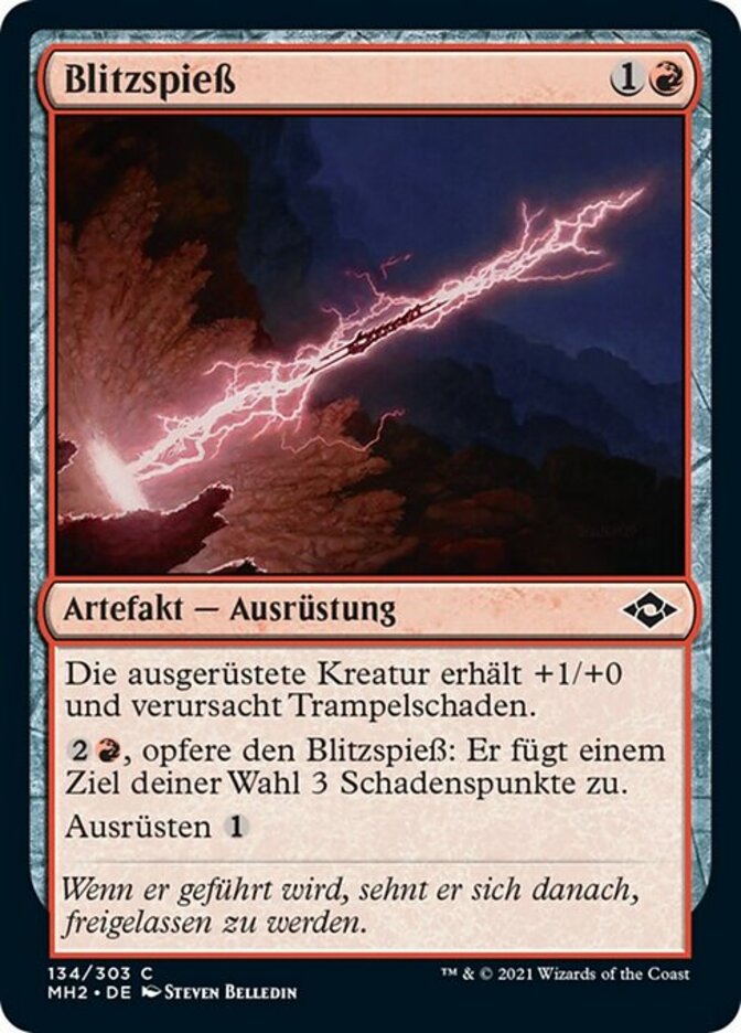 | Rules | Equipped creature gets +1/+0 and has trample. , Sacrifice Lightning Spear: It deals 3 damage to any target. Equip |