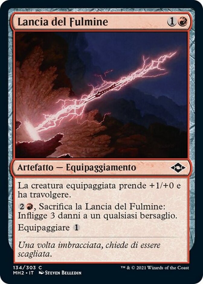 | Rules | Equipped creature gets +1/+0 and has trample. , Sacrifice Lightning Spear: It deals 3 damage to any target. Equip |