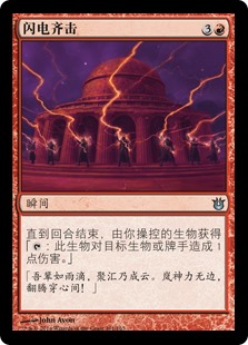| Rules | Until end of turn, creatures you control gain ": This creature deals 1 damage to any target." |