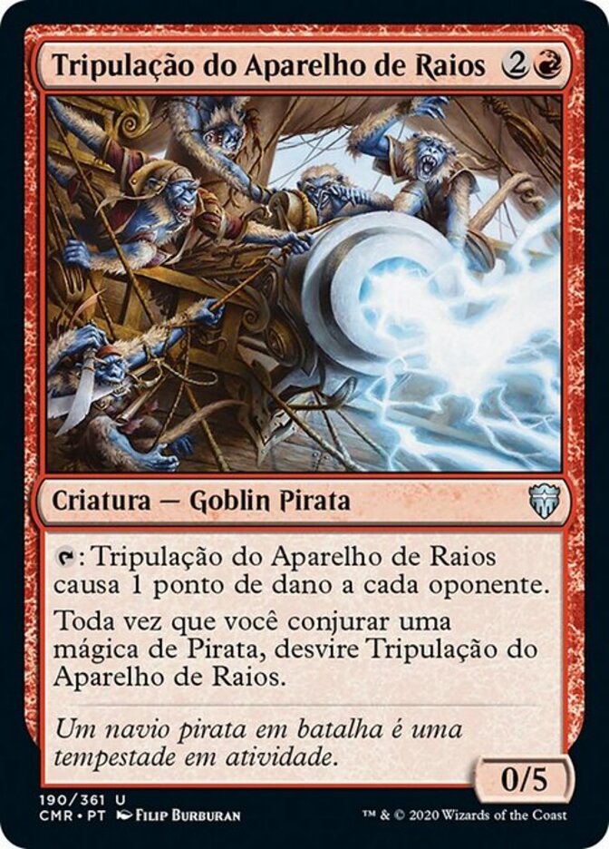 | Rules | : Lightning-Rig Crew deals 1 damage to each opponent. Whenever you cast a Pirate spell, untap Lightning-Rig Crew. |