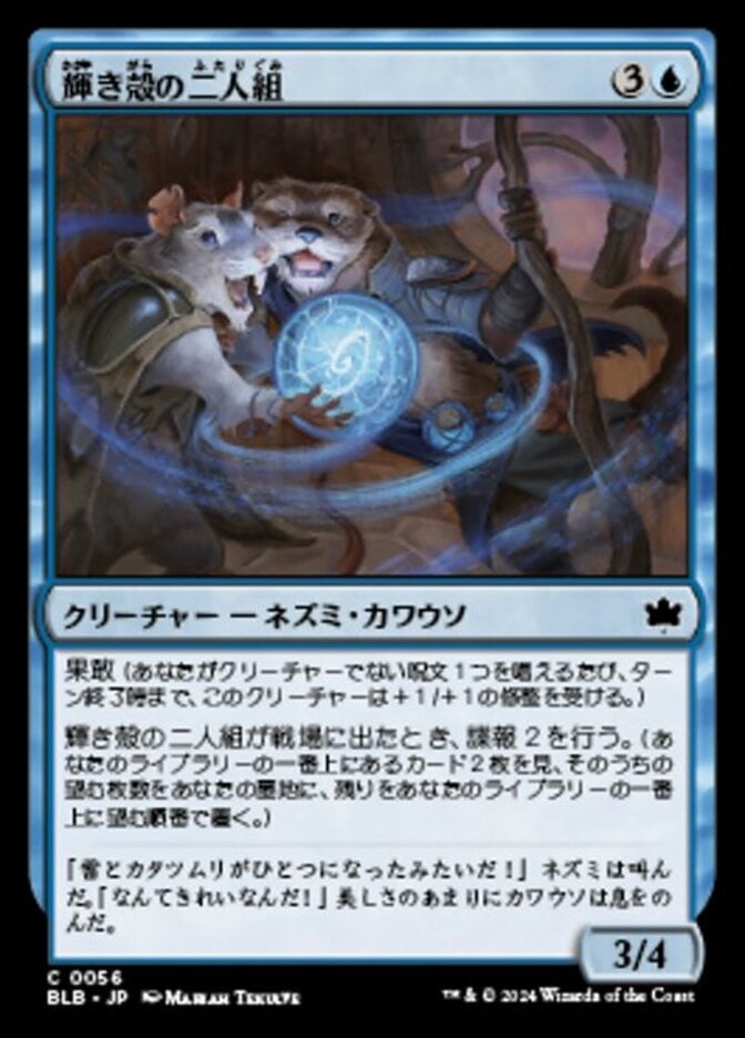 | Rules | Prowess (Whenever you cast a noncreature spell, this creature gets +1/+1 until end of turn.) When Lightshell Duo enters, surveil 2. (Look at the top two cards of your library, then put any number of them into your graveyard and the rest on top of your library in any order.) |