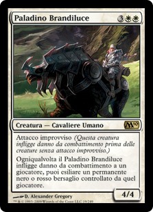 | Rules | First strike (This creature deals combat damage before creatures without first strike.) Whenever Lightwielder Paladin deals combat damage to a player, you may exile target black or red permanent that player controls. |