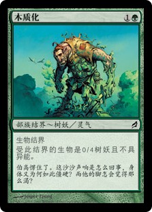 | Rules | Enchant creature Enchanted creature is a Treefolk with base power and toughness 0/4 and loses all abilities. |