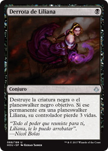 | Rules | Destroy target black creature or black planeswalker. If that permanent was a Liliana planeswalker, her controller loses 3 life. |