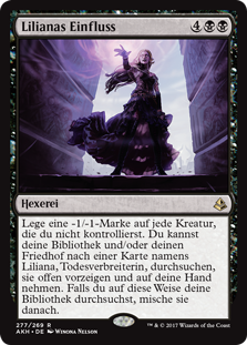 | Rules | Put a -1/-1 counter on each creature you don't control. You may search your library and/or graveyard for a card named Liliana, Death Wielder, reveal it, and put it into your hand. If you search your library this way, shuffle. |
