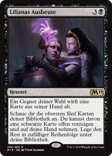| Rules | Target opponent discards a card. Look at the top five cards of your library. You may reveal a black card from among them and put it into your hand. Put the rest on the bottom of your library in a random order. |