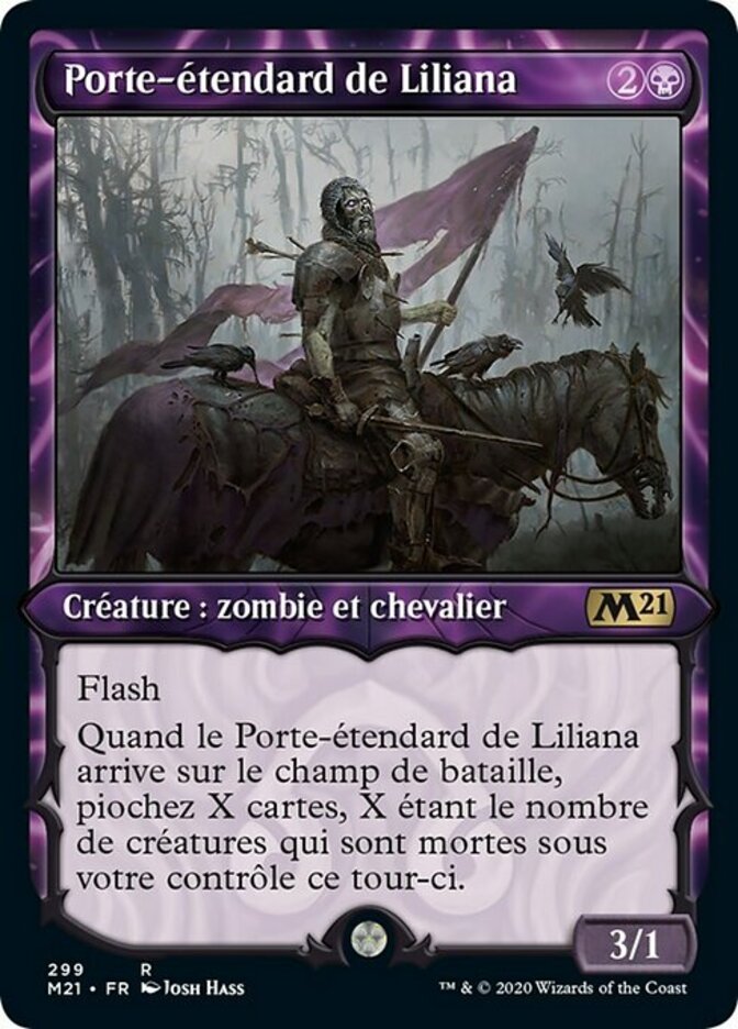 | Rules | Flash When Liliana's Standard Bearer enters the battlefield, draw X cards, where X is the number of creatures that died under your control this turn. |