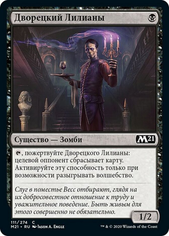 | Rules | , Sacrifice Liliana's Steward: Target opponent discards a card. Activate only as a sorcery. |