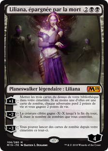 | Rules | +1: Mill three cards. If at least one Zombie card is milled this way, each opponent loses 2 life and you gain 2 life. −2: Target creature gets -X/-X until end of turn, where X is the number of Zombies you control. −3: You may cast Zombie spells from your graveyard this turn. |