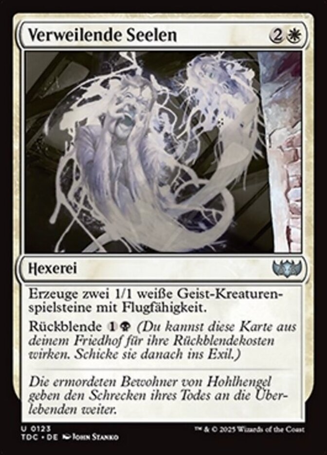 | Rules | Create two 1/1 white Spirit creature tokens with flying. Flashback (You may cast this card from your graveyard for its flashback cost. Then exile it.) |