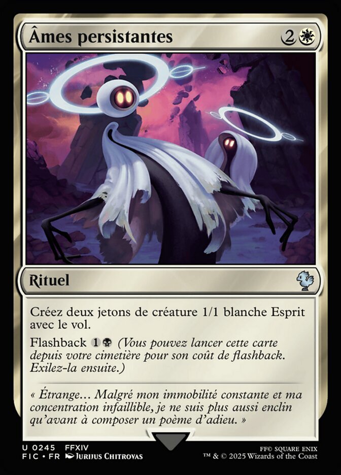 | Rules | Create two 1/1 white Spirit creature tokens with flying. Flashback (You may cast this card from your graveyard for its flashback cost. Then exile it.) |