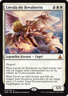 | Rules | Flying When Linvala, the Preserver enters the battlefield, if an opponent has more life than you, you gain 5 life. When Linvala enters the battlefield, if an opponent controls more creatures than you, create a 3/3 white Angel creature token with flying. |