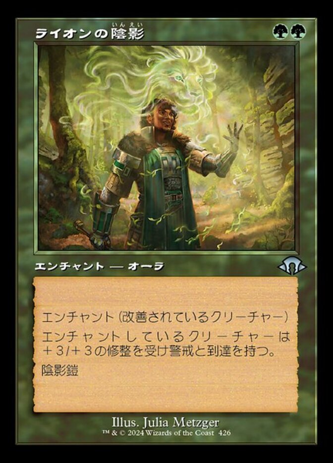 | Rules | Enchant modified creature (Equipment, Auras its controller controls, and counters are modifications.) Enchanted creature gets +3/+3 and has vigilance and reach. Umbra armor (If enchanted creature would be destroyed, instead remove all damage from it and destroy this Aura.) |