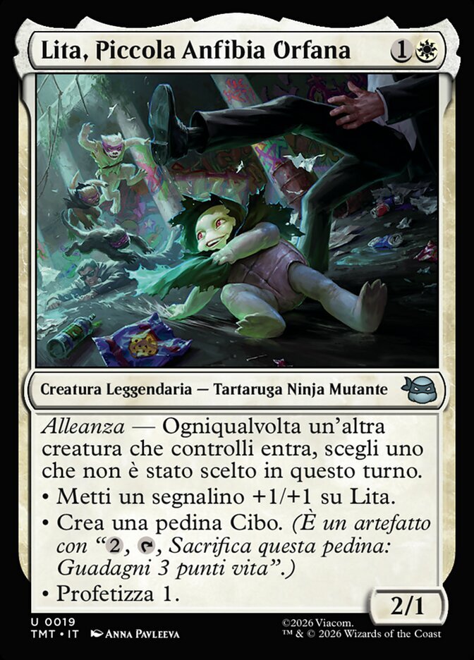 | Rules | Alliance — Whenever another creature you control enters, choose one that hasn't been chosen this turn. • Put a +1/+1 counter on Lita. • Create a Food token. (It's an artifact with ", , Sacrifice this token: You gain 3 life.") • Scry 1. |