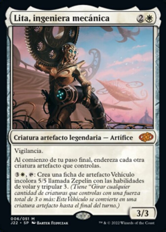 | Rules | Vigilance At the beginning of your end step, untap each other artifact creature you control. , : Create a 5/5 colorless Vehicle artifact token named Zeppelin with flying and crew 3. (It has "Tap any number of creatures you control with total power 3 or more: This Vehicle becomes an artifact creature until end of turn.") |