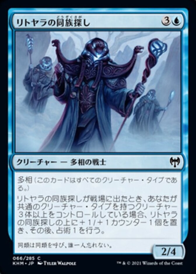 | Rules | Changeling (This card is every creature type.) When Littjara Kinseekers enters the battlefield, if you control three or more creatures that share a creature type, put a +1/+1 counter on Littjara Kinseekers, then scry 1. |
