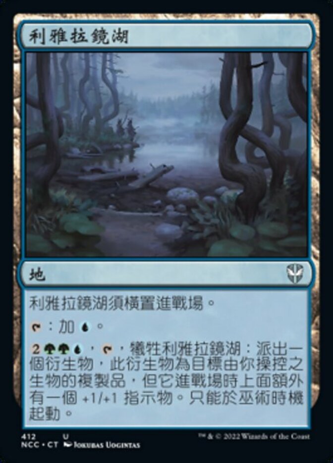 | Rules | Littjara Mirrorlake enters the battlefield tapped. : Add . , , Sacrifice Littjara Mirrorlake: Create a token that's a copy of target creature you control, except it enters the battlefield with an additional +1/+1 counter on it. Activate only as a sorcery. |