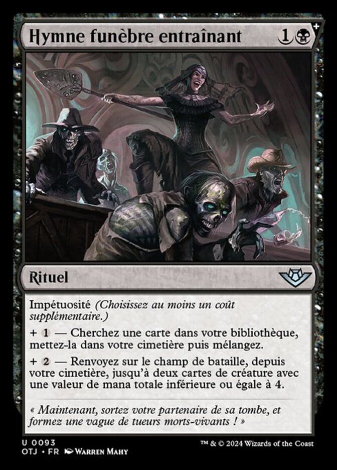 | Rules | Spree (Choose one or more additional costs.) + — Search your library for a card, put it into your graveyard, then shuffle. + — Return up to two creature cards with total mana value 4 or less from your graveyard to the battlefield. |