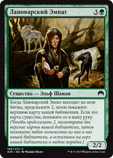 | Rules | When Llanowar Empath enters the battlefield, scry 2, then reveal the top card of your library. If it's a creature card, put it into your hand. (To scry 2, look at the top two cards of your library, then put any number of them on the bottom of your library and the rest on top in any order.) |
