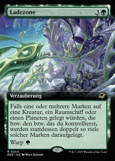 | Rules | If one or more counters would be put on a creature, Spacecraft, or Planet you control, twice that many of each of those kinds of counters are put on it instead. Warp (You may cast this card from your hand for its warp cost. Exile this enchantment at the beginning of the next end step, then you may cast it from exile on a later turn.) |
