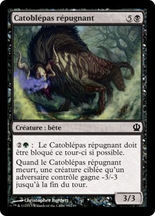 | Rules | : Loathsome Catoblepas must be blocked this turn if able. When Loathsome Catoblepas dies, target creature an opponent controls gets -3/-3 until end of turn. |