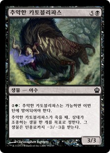 | Rules | : Loathsome Catoblepas must be blocked this turn if able. When Loathsome Catoblepas dies, target creature an opponent controls gets -3/-3 until end of turn. |