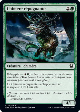 | Rules | Escape—, Exile three other cards from your graveyard. (You may cast this card from your graveyard for its escape cost.) Loathsome Chimera escapes with a +1/+1 counter on it. |