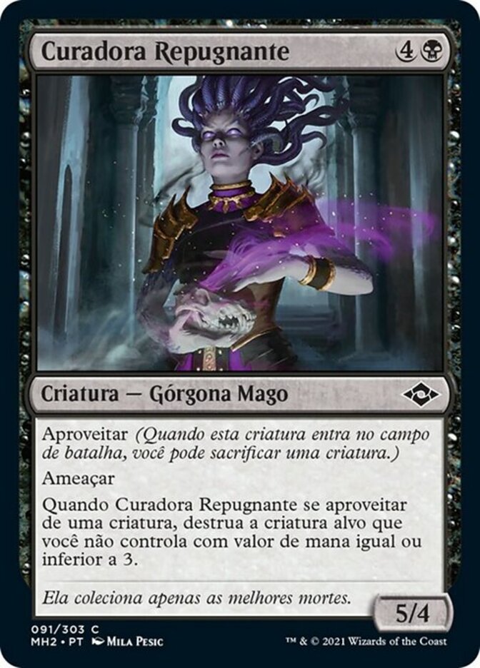| Rules | Exploit (When this creature enters the battlefield, you may sacrifice a creature.) Menace When Loathsome Curator exploits a creature, destroy target creature you don't control with mana value 3 or less. |
