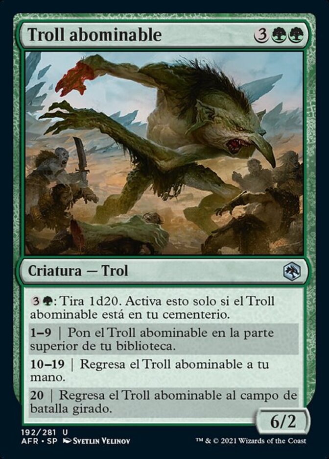 | Rules | : Roll a d20. Activate only if Loathsome Troll is in your graveyard. 1—9 | Put Loathsome Troll on top of your library. 10—19 | Return Loathsome Troll to your hand. 20 | Return Loathsome Troll to the battlefield tapped. |