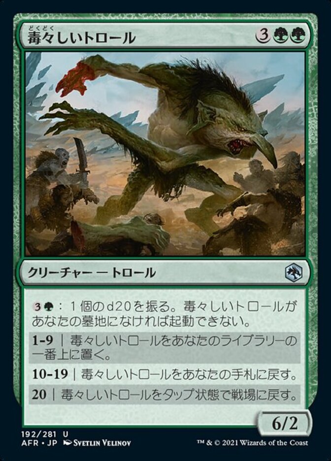 | Rules | : Roll a d20. Activate only if Loathsome Troll is in your graveyard. 1—9 | Put Loathsome Troll on top of your library. 10—19 | Return Loathsome Troll to your hand. 20 | Return Loathsome Troll to the battlefield tapped. |