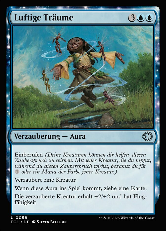 | Rules | Convoke (Your creatures can help cast this spell. Each creature you tap while casting this spell pays for or one mana of that creature's color.) Enchant creature When this Aura enters, draw a card. Enchanted creature gets +2/+2 and has flying. |