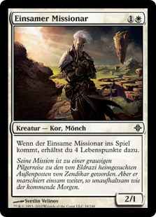 | Rules | When Lone Missionary enters the battlefield, you gain 4 life. |