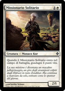 | Rules | When Lone Missionary enters the battlefield, you gain 4 life. |