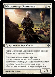 | Rules | When Lone Missionary enters the battlefield, you gain 4 life. |