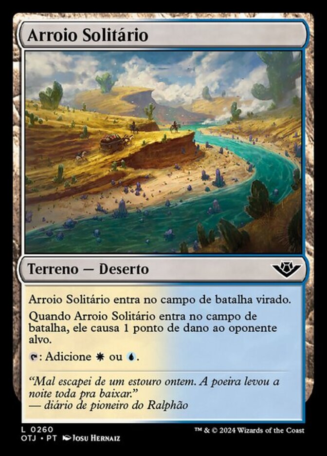 | Rules | Lonely Arroyo enters the battlefield tapped. When Lonely Arroyo enters the battlefield, it deals 1 damage to target opponent. : Add or . |