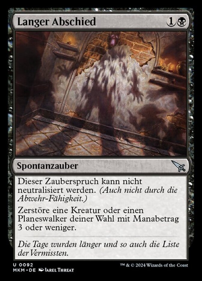 | Rules | This spell can't be countered. (This includes by the ward ability.) Destroy target creature or planeswalker with mana value 3 or less. |