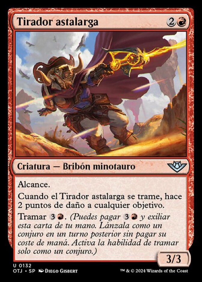 | Rules | Reach When Longhorn Sharpshooter becomes plotted, it deals 2 damage to any target. Plot (You may pay and exile this card from your hand. Cast it as a sorcery on a later turn without paying its mana cost. Plot only as a sorcery.) |