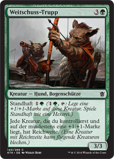 | Rules | Outlast (, : Put a +1/+1 counter on this creature. Outlast only as a sorcery.) Each creature you control with a +1/+1 counter on it has reach. (A creature with reach can block creatures with flying.) |